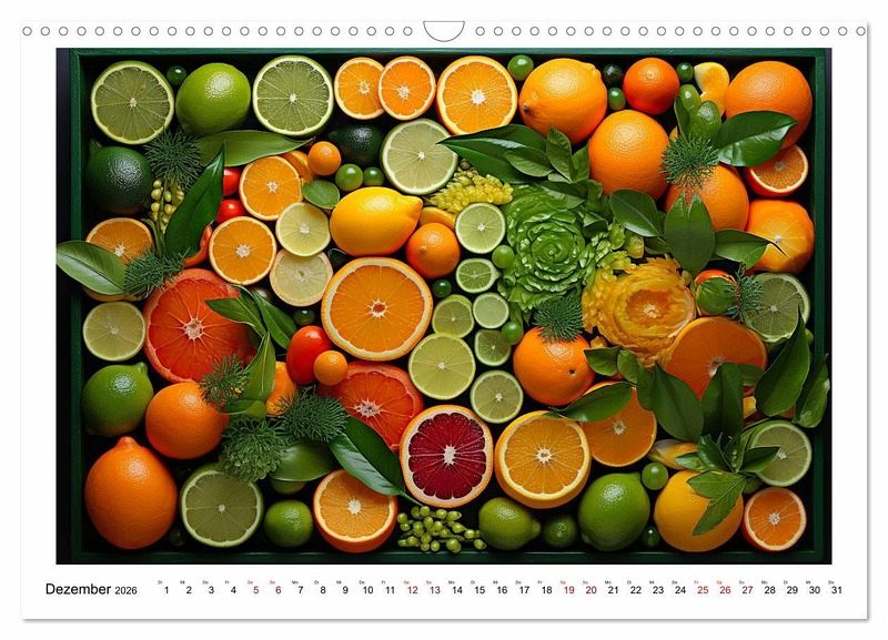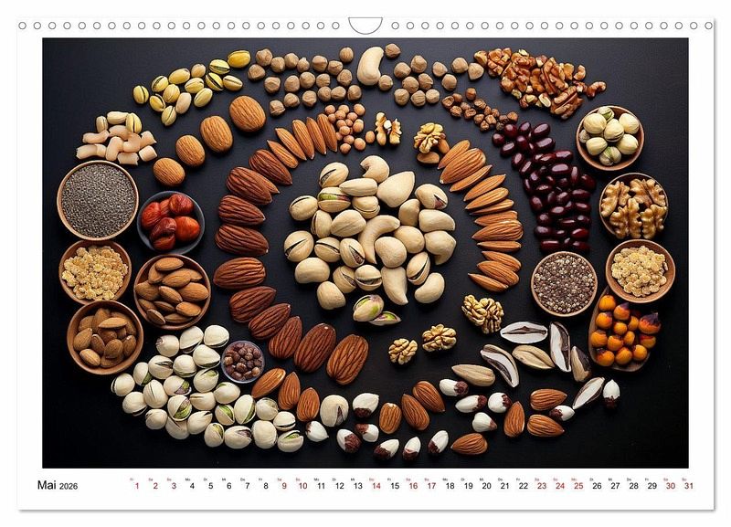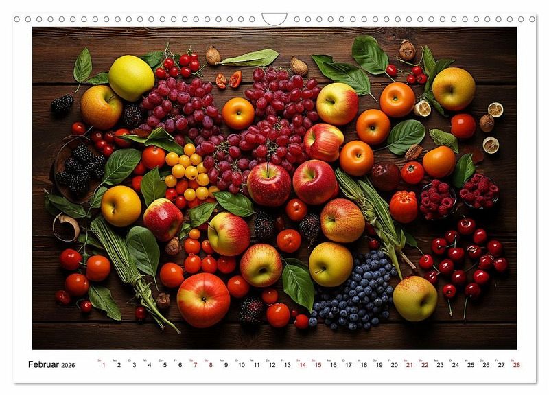Jede Seite des Kalenders zeigt ein beeindruckendes Foto von köstlichen, farbenfrohen Lebensmitteln, die die Vielfalt und Schönheit einer ausgewogenen Ernährung repräsentieren. So isst das Auge schon mal mit und der Magen freut sich auf die nächste gesunde Mahlzeit.