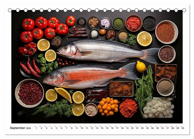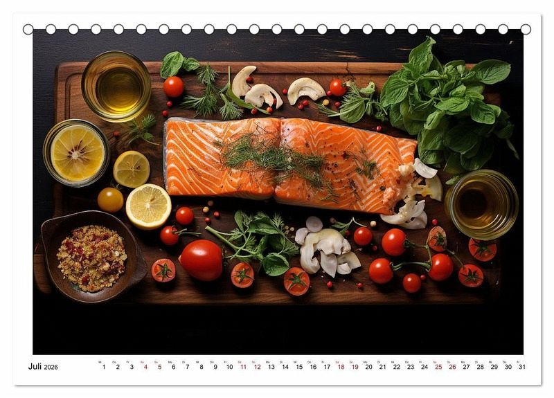Jede Seite des Kalenders zeigt ein beeindruckendes Foto von köstlichen, farbenfrohen Lebensmitteln, die die Vielfalt und Schönheit einer ausgewogenen Ernährung repräsentieren. So isst das Auge schon mal mit und der Magen freut sich auf die nächste gesunde Mahlzeit.