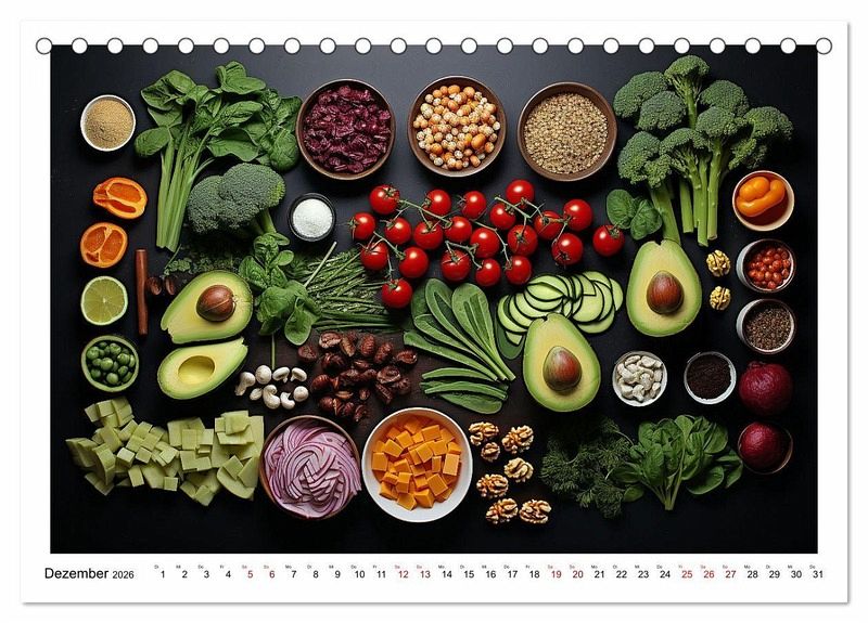 Ein Kalender mit Bildern zu gesunder Ernährung ist eine großartige Möglichkeit, Menschen auf inspirierende Weise zu einer ausgewogenen und nahrhaften Lebensweise zu motivieren. Dieser Kalender besteht aus zwölf Monatsseiten, die jeweils ein einzigartiges Bild zum Thema veganer Ernährung enthalten.