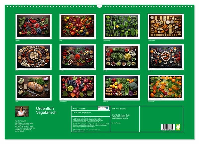 Ein Kalender mit Bildern zu gesunder Ernährung ist eine großartige Möglichkeit, Menschen auf inspirierende Weise zu einer ausgewogenen und nahrhaften Lebensweise zu motivieren. Dieser Kalender besteht aus zwölf Monatsseiten, die jeweils ein einzigartiges Bild zum Thema vegetarischer Ernährung enthalten