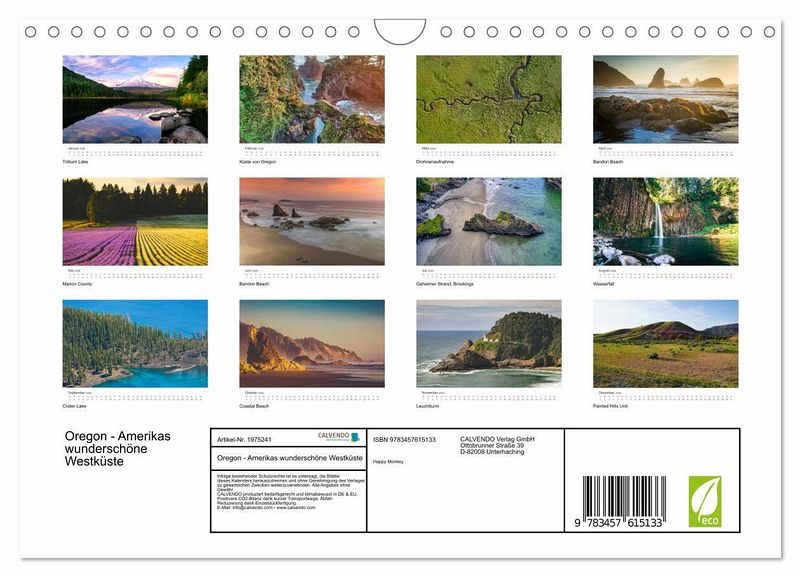 Von bunten Hügeln bis hin zu traumhaften Stränden. Das und viel mehr noch erwartet Sie in einem traumhaften Oregon Kalender. Es warten 12 wunderschöne Aufnahmen darauf, von Ihnen entdeckt zu werden.