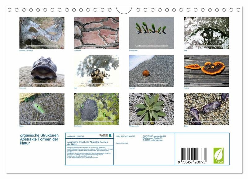 QUALITÄT - Hochwertiger Fotokalender mit 12 wunderschönen Motiven auf lichtbeständigem Bilderdruckpapier, robuste Spiralbindung mit Aufhängebügel.NACHHALTIG - deutliche Abfallreduzierung durch bedarfsgerechte Einzelstückfertigung, umweltfreundliches FSC-zertifiziertes Papier, Produktion in Deutschland, klimabewusste Logistik.PERFEKTES GESCHENK - Kalender für Freunde und Familie, für Kinder und Erwachsene, jung und alt, zu Weihnachten, Geburtstag oder zwischendurch.VIELFALT- Bildkalender in verschiedenen Formaten, z.B. DIN A5, DIN A4, DIN A3 sowie DIN A2. Ob Naturmotiv, Gemälde oder Fotos, ideal für ein persönliches Wohlfühlambiente.Jedes Bild offenbart abstrakte Formen und organische Strukturen, die oft übersehen werden. von Autor(in): Claudia Schimmack