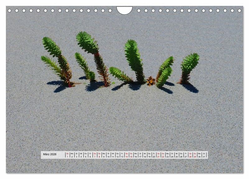 Entdecken Sie die verborgene Schönheit der Natur. Jedes Bild offenbart abstrakte Formen und organische Strukturen, die oft im Alltag übersehen werden. Von einer Baumrinde in der Form eines Auges bis hin zu einer einzelnen Pflanze die im Sand gedeiht und ihren Schatten wirft - jedes Motiv enthüllt die einzigartige Anmut und Eleganz, die in der Natur verborgen liegt. Tauchen Sie ein in die faszinierende Welt der natürlichen Details. Ein Kalender, der Sie Monat für Monat zu neuen Entdeckungen führt und Ihre Wertschätzung für die kleinen Wunder der Natur vertieft.