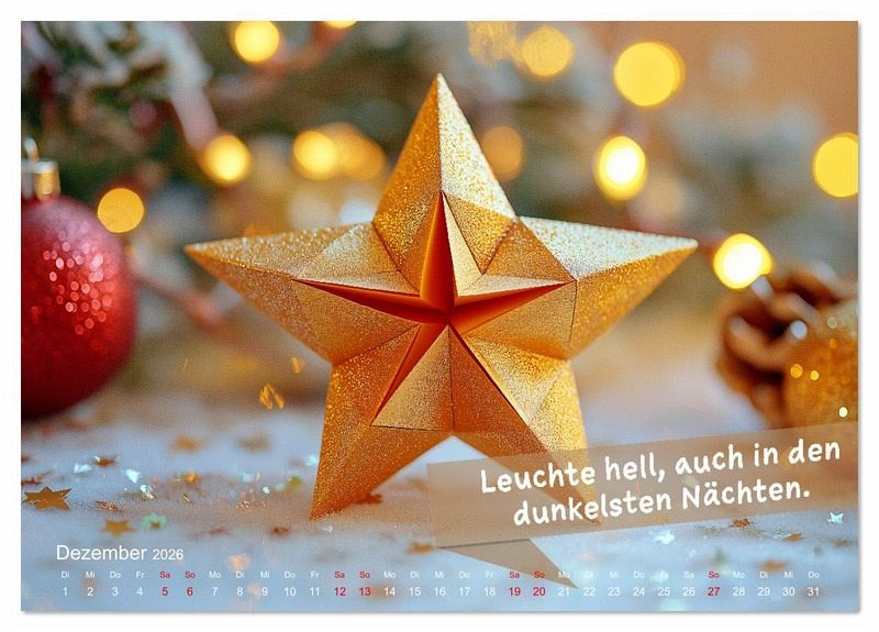 Dezember: Übung zu Origami-Stern zu Weihnachten: Visualisiere ein leuchtendes Licht in dir, das Wärme und Frieden verbreitet. - Fördert inneren Frieden.