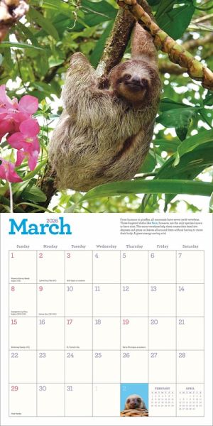 Twelve months of taking it easy with Lucy Cooke’s precious portraits of the adorable residents of Costa Rican sloth sanctuaries! * CANDID CUTENESS: Sloths captured in all their chill charm, hanging in trees, lounging in hammocks and baskets, and cozying up in snuggly little piles. Plus sloth stories and fun facts! * EXPERT PHOTOGRAPHER: From British filmmaker and sloth expert Lucy Cooke, the founder of the Sloth Appreciation Society. * GREAT GIFT: This bestselling calendar is perfect for the sloth lover in your life or anyone who might need a reminder to take it slow throughout the year. * NOW PLASTIC-FREE!: Workman wall calendars are completely plastic-free! Now printed with an extended paper flap closed with a fully recyclable seal—no more shrink-wrap!