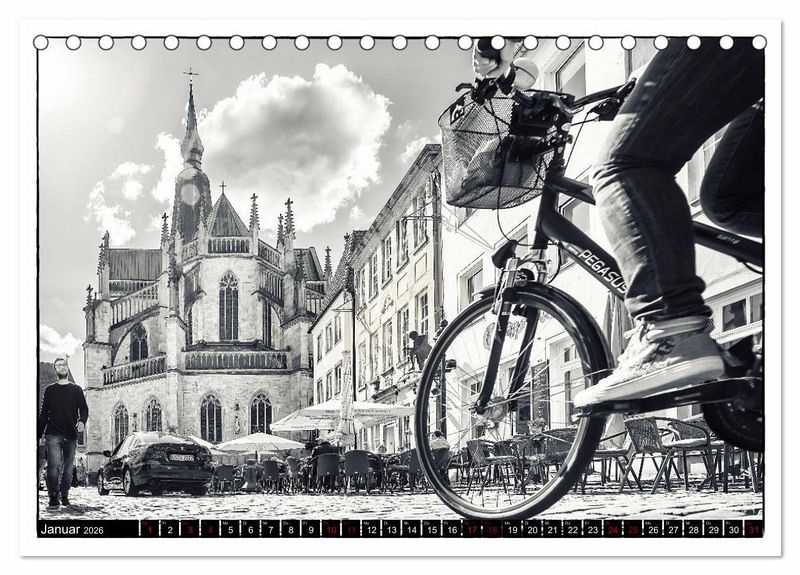 Die Friedensstadt Osnabrück überwältigt mit frischen Reizen. Die Fahrradfahrer erobern die Straßen, bringen mehr Natur, mehr Gesundheit, mehr Freiheit mit. Die dezente Farbgebung konzentriert sich auf das Wesentliche. Der mittelalterliche Flair wirkt natürlicher. Klassizismus, Rokoko und Fachwerkbauweise bringen eine direkte Annäherung der Sicht. Die Augen weiten sich und das Sehen wird zum Erlebnis.