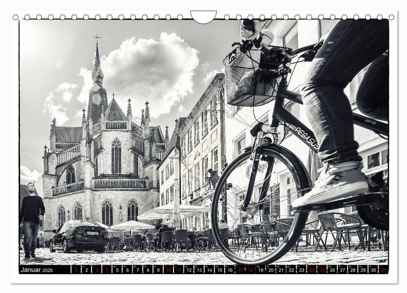 Die Friedensstadt Osnabrück überwältigt mit frischen Reizen. Die Fahrradfahrer erobern die Straßen, bringen mehr Natur, mehr Gesundheit, mehr Freiheit mit. Die dezente Farbgebung konzentriert sich auf das Wesentliche. Der mittelalterliche Flair wirkt natürlicher. Klassizismus, Rokoko und Fachwerkbauweise bringen eine direkte Annäherung der Sicht. Die Augen weiten sich und das Sehen wird zum Erlebnis.