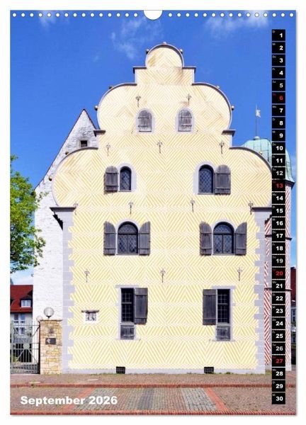 Osnabrück zeigt in diesem Architektur-Kalender 13 seiner auffälligsten Fassaden. Das reicht von reich verzierten Fachwerkhäusern bis zum Historismus. Dazu gesellt sich ein die Altstadt zitierender Ausrutscher aus der Nachkriegsmoderne vom Neumarkt. Die historische Altstadt ist dennoch überrepräsentiert, mit Gebäuden vom Markt, aus der Krahnstraße, der Bierstraße (das berühmte Hotel Walhalla), der Marienstraße oder dem Osnabrücker Dom. Neben dem Portal des Osnabrücker Hauptbahnhofs komplettiert der Ledenhof die Zusammenstellung.