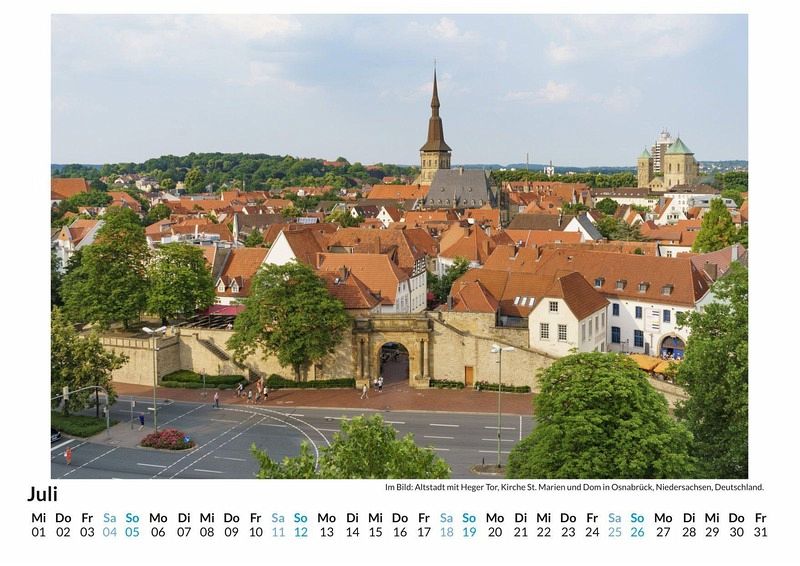 Entdecken Sie die Schönheit Osnabrücks mit unserem exklusiven Wandkalender! Lassen Sie sich Monat für Monat von 12 atemberaubenden Motiven dieser charmanten Stadt verzaubern - von historischen Fachwerkhäusern bis hin zu malerischen Landschaften. Gedruckt auf hochwertigem, lichtbeständigem Bilderdruckpapier, bringt dieser Kalender die einzigartige Atmosphäre Osnabrücks direkt in Ihr Zuhause. Nachhaltigkeit liegt uns am Herzen: Unsere Kalender werden in Deutschland auf FSC-zertifiziertem Papier produziert. Perfekt als Geschenk oder für die eigene Wand - holen Sie sich ein Stück Osnabrück und genießen Sie das ganze Jahr über die Schönheit dieser Stadt! Hochwertig Erleben Sie ein Jahr voller Eleganz mit unserem Premium-Fotokalender. Jedes der 12 Motive ist auf hochwertigem, lichtbeständigem Bilderdruckpapier gedruckt, um die Lebendigkeit jedes Bildes zu bewahren. Die robuste Spiralbindung gewährleistet Langlebigkeit und einfache Handhabung. Nachhaltig Unser Engagement für die Umwelt spiegelt sich in jedem Exemplar wider. Durch die Produktion auf Abruf reduzieren wir signifikant unseren Abfall. Wir verwenden ausschließlich umweltfreundliches, FSC-zertifiziertes Papier. Stolz gefertigt in Deutschland, achten wir bei unserer Logistik auf Klimaschutz, um unseren ökologischen Fußabdruck zu minimieren. Das ideale Geschenk Dieser Kalender ist das perfekte Präsent für jeden Anlass - ob Weihnachten, Geburtstage oder einfach als liebevolle Aufmerksamkeit zwischendurch. Geeignet für Freunde, Familie, Kinder und Erwachsene gleichermaßen, bereichert er jedes Zuhause mit seiner Vielfalt und Schönheit, unabhängig vom Alter der Beschenkten.