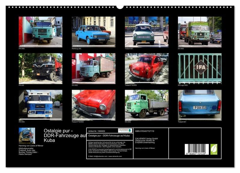 PREMIUM-LINIE - Brillanter Fotokalender mit 12 wunderschönen Motiven, Kunstdruck in Hochglanz in Museumsqualität.QUALITÄT - edle Materialien, stabile Rückwand mit 2 innovativen Einstecktaschen für eine optimale Präsentation an der Wand.NACHHALTIG - deutliche Abfallreduzierung durch bedarfsgerechte Einzelstückfertigung, umweltfreundliches FSC-zertifiziertes Papier, Produktion in Deutschland, klimabewusste Logistik.PERFEKTES GESCHENK - Kalender für Freunde und Familie, für Kinder und Erwachsene, jung und alt, zu Weihnachten, Geburtstag oder zwischendurch.IFA W50, IFA L60, Trabant und Wartburg auf Kuba von Autor(in): Henning von Loewis of Menar