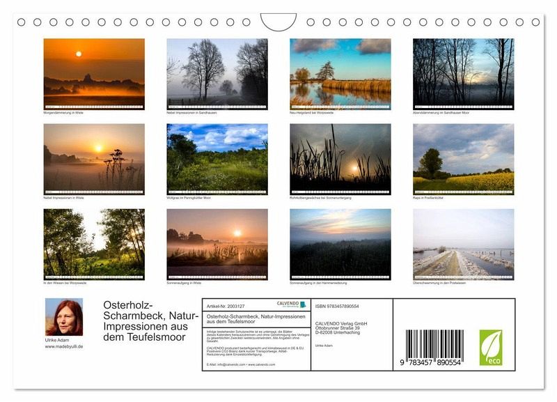 QUALITÄT - Hochwertiger Fotokalender mit 12 wunderschönen Motiven auf lichtbeständigem Bilderdruckpapier, robuste Spiralbindung mit Aufhängebügel.NACHHALTIG - deutliche Abfallreduzierung durch bedarfsgerechte Einzelstückfertigung, umweltfreundliches FSC-zertifiziertes Papier, Produktion in Deutschland, klimabewusste Logistik.PERFEKTES GESCHENK - Kalender für Freunde und Familie, für Kinder und Erwachsene, jung und alt, zu Weihnachten, Geburtstag oder zwischendurch.VIELFALT - Bildkalender in verschiedenen Formaten, z.B. DIN A5, DIN A4, DIN A3 sowie DIN A2. Ob Naturmotiv, Gemälde oder Fotos, ideal für ein persönliches Wohlfühlambiente.Bezaubernde Fotos aus dem Landkreis Osterholz-Scharmbeck im schönen Teufelsmoor von Autor(in): Fotokunst Ulrike Adam