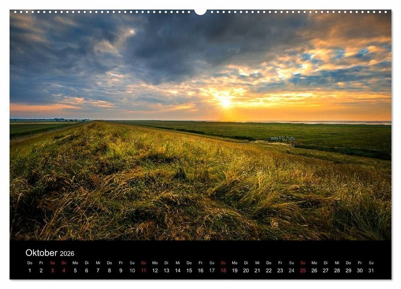 Von Strandkörben im Abendlicht in Harlesiel über Sonnenaufgänge in Wiesmoor bis hin zu wunderschönen Lichtstimmungen bei Weener. Dieser Kalender nimmt Sie mit auf eine atemberaubende Reise durch den (Ost)Friesischen Raum, eingefangen im schönen Licht der auf- und untergehenden Sonne.