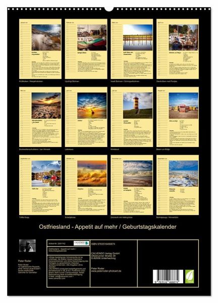 PREMIUM-LINIE - Brillanter Fotokalender mit 12 wunderschönen Motiven, Kunstdruck in Hochglanz in Museumsqualität.QUALITÄT - edle Materialien, stabile Rückwand mit 2 innovativen Einstecktaschen für eine optimale Präsentation an der Wand.NACHHALTIG - deutliche Abfallreduzierung durch bedarfsgerechte Einzelstückfertigung, umweltfreundliches FSC-zertifiziertes Papier, Produktion in Deutschland, klimabewusste Logistik.PERFEKTES GESCHENK - Kalender für Freunde und Familie, für Kinder und Erwachsene, jung und alt, zu Weihnachten, Geburtstag oder zwischendurch.Eine kulinarischer Wandkalender mit original ostfriesischen Rezepten von Autor(in): Peter Roder