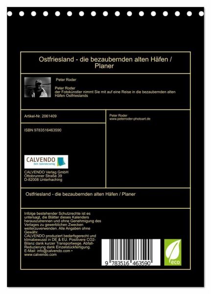 QUALITÄT - Hochwertiger Fotokalender mit 12 wunderschönen Motiven auf lichtbeständigem Bilderdruckpapier, robuste Spiralbindung.NACHHALTIG - deutliche Abfallreduzierung durch bedarfsgerechte Einzelstückfertigung, umweltfreundliches FSC-zertifiziertes Papier, Produktion in Deutschland, klimabewusste Logistik.PERFEKTES GESCHENK - Kalender für Freunde und Familie, für Kinder und Erwachsene, jung und alt, zu Weihnachten, Geburtstag oder zwischendurch.VIELFALT - Bildkalender in verschiedenen Formaten, z.B. DIN A5, DIN A4, DIN A3 sowie DIN A2. Ob Naturmotiv, Gemälde oder Fotos, ideal für ein persönliches Wohlfühlambiente.Peter Roder mit einer Auswahl seiner faszinierenden Bilder aus Ostfrieslands bezaubernden alten Häfen Greetsiel, Neuharlingersiel, Carolinensiel von Autor(in): Peter Roder
