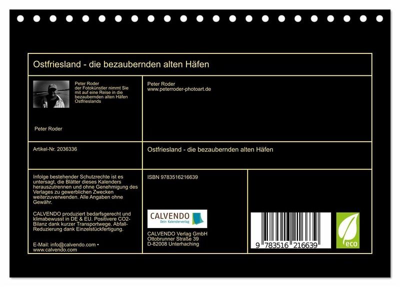 QUALITÄT - Hochwertiger Fotokalender mit 12 wunderschönen Motiven auf lichtbeständigem Bilderdruckpapier, robuste Spiralbindung.NACHHALTIG - deutliche Abfallreduzierung durch bedarfsgerechte Einzelstückfertigung, umweltfreundliches FSC-zertifiziertes Papier, Produktion in Deutschland, klimabewusste Logistik.PERFEKTES GESCHENK - Kalender für Freunde und Familie, für Kinder und Erwachsene, jung und alt, zu Weihnachten, Geburtstag oder zwischendurch.VIELFALT - Bildkalender in verschiedenen Formaten, z.B. DIN A5, DIN A4, DIN A3 sowie DIN A2. Ob Naturmotiv, Gemälde oder Fotos, ideal für ein persönliches Wohlfühlambiente.Peter Roder mit einer Auswahl seiner faszinierenden Bilder aus Ostfrieslands bezaubernden alten Häfen Greetsiel, Neuharlingersiel, Carolinensiel von Autor(in): Peter Roder