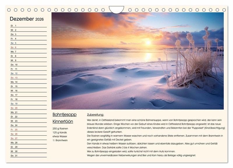 QUALITÄT - Hochwertiger Fotokalender mit 12 wunderschönen Motiven auf lichtbeständigem Bilderdruckpapier, robuste Spiralbindung mit Aufhängebügel.NACHHALTIG - deutliche Abfallreduzierung durch bedarfsgerechte Einzelstückfertigung, umweltfreundliches FSC-zertifiziertes Papier, Produktion in Deutschland, klimabewusste Logistik.PERFEKTES GESCHENK - Kalender für Freunde und Familie, für Kinder und Erwachsene, jung und alt, zu Weihnachten, Geburtstag oder zwischendurch.VIELFALT - Bildkalender in verschiedenen Formaten, z.B. DIN A5, DIN A4, DIN A3 sowie DIN A2. Ob Naturmotiv, Gemälde oder Fotos, ideal für ein persönliches Wohlfühlambiente.Eine kulinarischer Wandkalender mit original ostfriesischen Rezepten. von Autor(in): Peter Roder