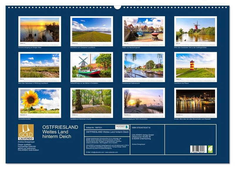 Die "Ostfriesische Halbinsel" ist durchzogen von Kanälen und Seen. Es ist für seine Mühlenstraße bekannt und auch das Ewige Meer und das Große Meer ist dem Besucher ein Begriff. Die Urlaubsorte an den Sielen der Nordsee sind für einen erholsamen Urlaub bekannt. Dieser qualitativ hochwertige Kalender gehört zur exklusiven CALVENDO Gold-Edition.
