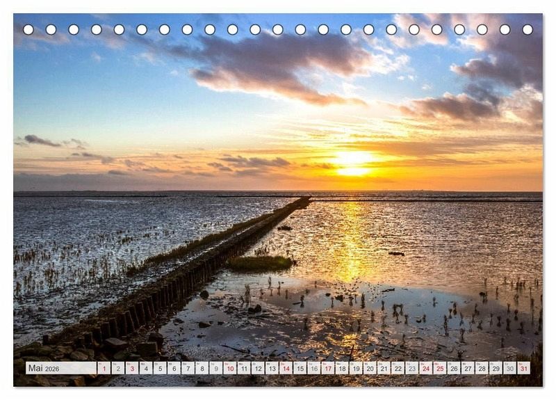 Mai: Sonnenuntergang am Wattenmeer in der Leybucht