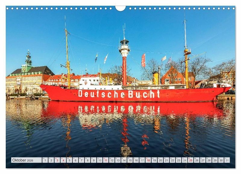 Oktober: Blick zum Feuerschiff im Delft von Emden