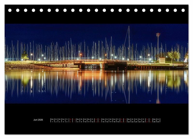 Juni: Ansicht des Yachthafens in Heiligenhafen, lange vor Sonnenaufgang