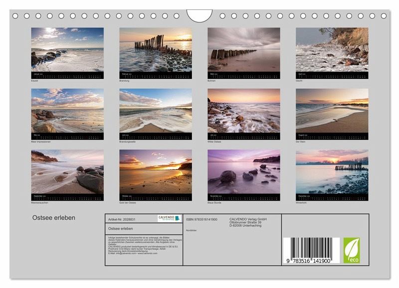 QUALITÄT - Hochwertiger Fotokalender mit 12 wunderschönen Motiven auf lichtbeständigem Bilderdruckpapier, robuste Spiralbindung mit Aufhängebügel.NACHHALTIG - deutliche Abfallreduzierung durch bedarfsgerechte Einzelstückfertigung, umweltfreundliches FSC-zertifiziertes Papier, Produktion in Deutschland, klimabewusste Logistik.PERFEKTES GESCHENK - Kalender für Freunde und Familie, für Kinder und Erwachsene, jung und alt, zu Weihnachten, Geburtstag oder zwischendurch.VIELFALT - Bildkalender in verschiedenen Formaten, z.B. DIN A5, DIN A4, DIN A3 sowie DIN A2. Ob Naturmotiv, Gemälde oder Fotos, ideal für ein persönliches Wohlfühlambiente.Die Ostsee zu verschiedenen Jahres- und Tageszeiten von Autor(in): Nordbilder Fotografie aus Leidenschaft