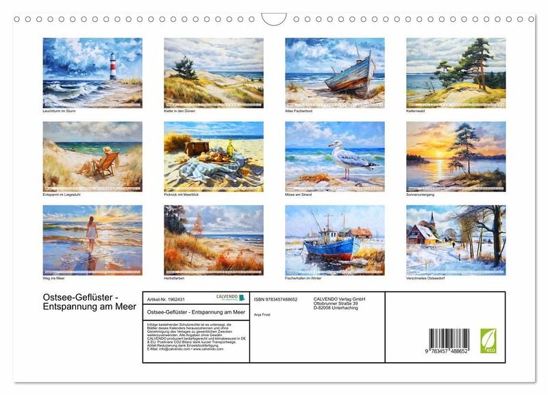 QUALITÄT - Hochwertiger Fotokalender mit 12 wunderschönen Motiven auf lichtbeständigem Bilderdruckpapier, robuste Spiralbindung mit Aufhängebügel.NACHHALTIG - deutliche Abfallreduzierung durch bedarfsgerechte Einzelstückfertigung, umweltfreundliches FSC-zertifiziertes Papier, Produktion in Deutschland, klimabewusste Logistik.PERFEKTES GESCHENK - Kalender für Freunde und Familie, für Kinder und Erwachsene, jung und alt, zu Weihnachten, Geburtstag oder zwischendurch.VIELFALT - Bildkalender in verschiedenen Formaten, z.B. DIN A5, DIN A4, DIN A3 sowie DIN A2. Ob Naturmotiv, Gemäldeoder Fotos, ideal für ein persönliches Wohlfühlambiente.Die beruhigende Schönheit der Ostsee im Ölmalstil von Autor(in): Anja Frost