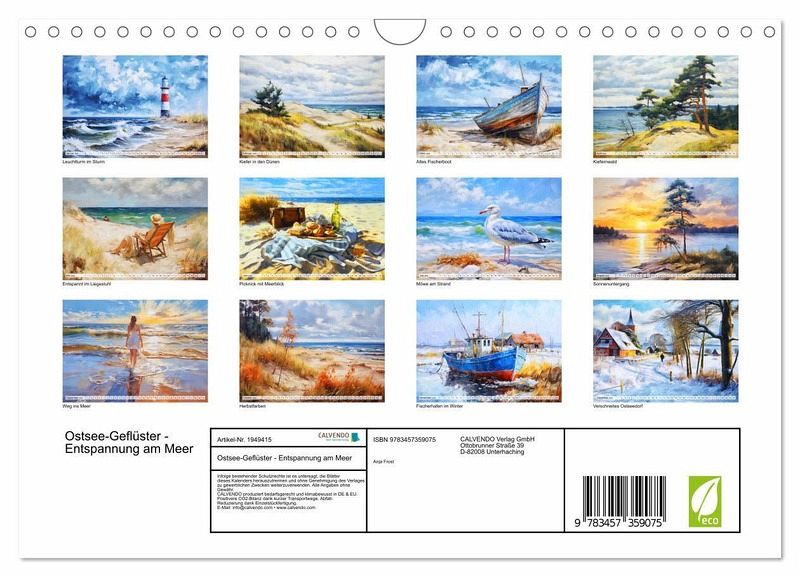 QUALITÄT - Hochwertiger Fotokalender mit 12 wunderschönen Motiven auf lichtbeständigem Bilderdruckpapier, robuste Spiralbindung mit Aufhängebügel.NACHHALTIG - deutliche Abfallreduzierung durch bedarfsgerechte Einzelstückfertigung, umweltfreundliches FSC-zertifiziertes Papier, Produktion in Deutschland, klimabewusste Logistik.PERFEKTES GESCHENK - Kalender für Freunde und Familie, für Kinder und Erwachsene, jung und alt, zu Weihnachten, Geburtstag oder zwischendurch.VIELFALT - Bildkalender in verschiedenen Formaten, z.B. DIN A5, DIN A4, DIN A3 sowie DIN A2. Ob Naturmotiv, Gemäldeoder Fotos, ideal für ein persönliches Wohlfühlambiente.Die beruhigende Schönheit der Ostsee im Ölmalstil von Autor(in): Anja Frost