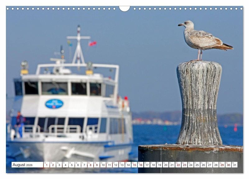 August: Fähre und Möwe in Neuendorf, Insel Hiddensee