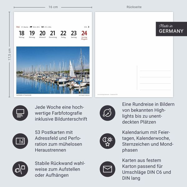 - Dünen, Strand und Meer: traumhaft schöne Bilder von der Ostseeküste in einem kleinen Kalender mit 53 Postkarten mit Perforation zum Heraustrennen- Vitamin Sea für den Schreibtisch: Kalender mit Meeresmotiven zum Sammeln oder Verschicken im Format 16 x 17,5 cm- Die Ostsee und ihre malerische Natur: Wochenkalender mit beeindruckenden Landschaftsfotografien von der Kieler Bucht bis nach Usedom- Postkartenkalender, bei dem man fast das Meeres-Rauschen hören kann: tolle Küsten-Impressionen renommierter Fotografen- Die schönsten Ziele, die faszinierendsten Länder: Sehnsuchtskalender von Harenberg im Athesia Kalenderverlag