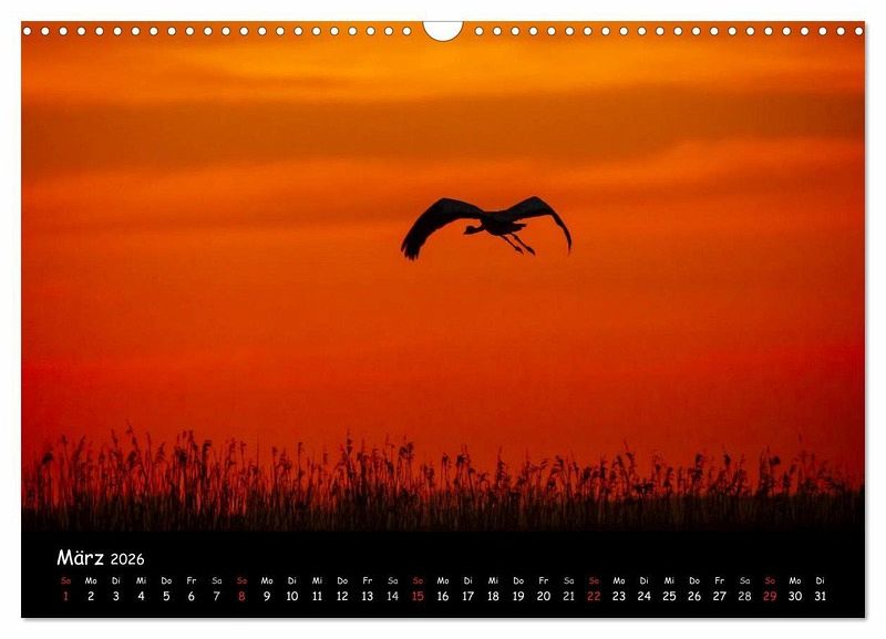 März: Kranichflug im Sonnenuntergang