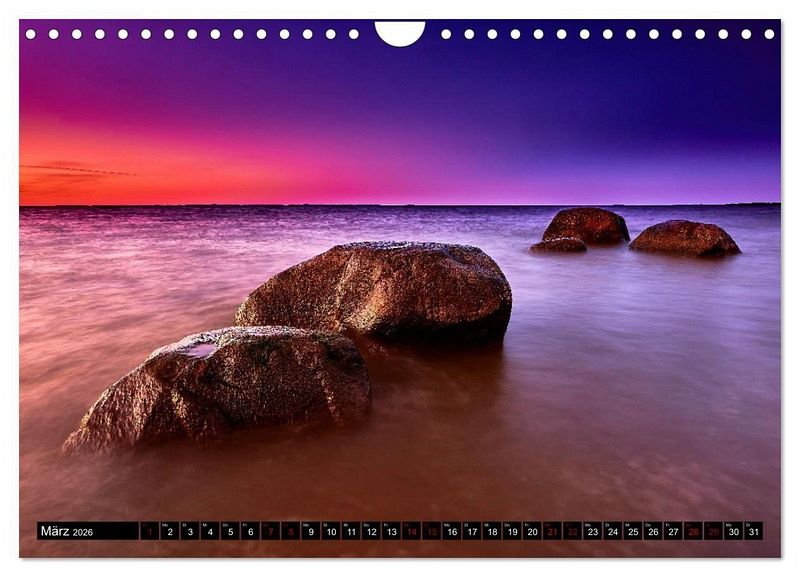 Wenn der Tag sich der Nacht nähert, erwachen die Steine am Strand. Landschaftskalender, der die schönen Seiten der ansonsten unscheinbaren Findlinge an unserer Ostseeküste in den Mittelpunkt rückt, vom Frühling bis zum Winter. Zum Träumen, Verweilen und Erinnern.