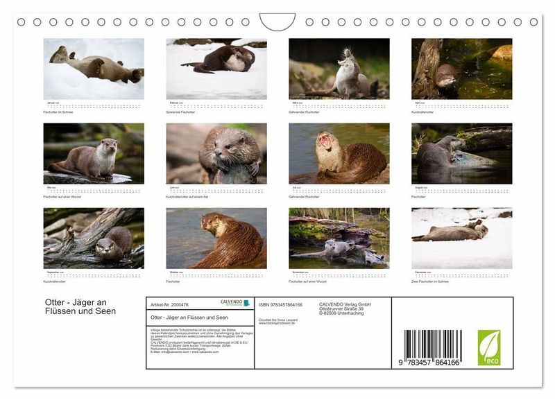 QUALITÄT - Hochwertiger Fotokalender mit 12 wunderschönen Motiven auf lichtbeständigem Bilderdruckpapier, robuste Spiralbindung mit Aufhängebügel.NACHHALTIG - deutliche Abfallreduzierung durch bedarfsgerechte Einzelstückfertigung, umweltfreundliches FSC-zertifiziertes Papier, Produktion in Deutschland, klimabewusste Logistik.PERFEKTES GESCHENK - Kalender für Freunde und Familie, für Kinder und Erwachsene, jung und alt, zu Weihnachten, Geburtstag oder zwischendurch.VIELFALT - Bildkalender in verschiedenen Formaten, z.B. DIN A5, DIN A4, DIN A3 sowie DIN A2. Ob Naturmotiv, Gemälde oder Fotos, ideal für ein persönliches Wohlfühlambiente.Otter - geschickte Jäger im Wasser von Autor(in): Cloudtail the Snow Leopard