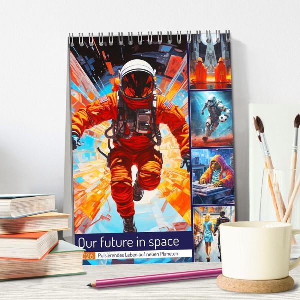 Unsere mögliche Zukunft! Dieser Kalender zeigt coole Vision des Lebens auf einem neuen Planeten. Dargestellt in einer Serie von modernen Illustrationen, die mit KI generiert wurden und Space-Restaurant, Shopping Mall, Himmelbar, galaktisches Event und weitere Szenen aus dem Weltall-Leben zeigen. Jeder Monat enthüllt ein faszinierendes Bild, das die pulsierende Atmosphäre und die künstlerische Pracht einer Welt jenseits unserer Vorstellungskraft einfängt. Dieser Kalender ist perfekt für Science-Fiction-Liebhaber.