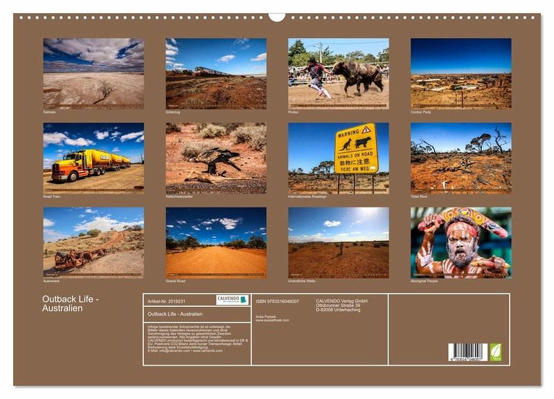 QUALITÄT - Hochwertiger Fotokalender mit 12 wunderschönen Motiven auf lichtbeständigem Bilderdruckpapier, robuste Spiralbindung mit Aufhängebügel.NACHHALTIG - deutliche Abfallreduzierung durch bedarfsgerechte Einzelstückfertigung, umweltfreundliches FSC-zertifiziertes Papier, Produktion in Deutschland, klimabewusste Logistik.PERFEKTES GESCHENK - Kalender für Freunde und Familie, für Kinder und Erwachsene, jung und alt, zu Weihnachten, Geburtstag oder zwischendurch.VIELFALT - Bildkalender in verschiedenen Formaten, z.B. DIN A5, DIN A4, DIN A3 sowie DIN A2. Ob Naturmotiv, Gemälde oder Fotos, ideal für ein persönliches Wohlfühlambiente.Outback Impressionen von Autor(in): Aussiefreak
