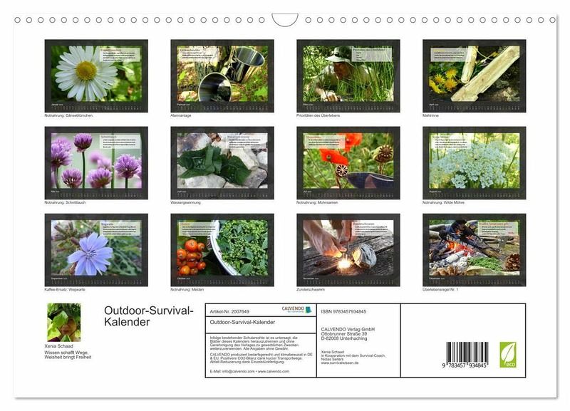 Der Kalender vereint aussagekräftige Bilder und wichtige Informationen. Monat für Monat wird Wissen vermittelt, das Sicherheit für Survival-Situationen schenkt.