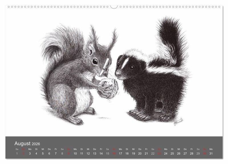 Freche und lustige Tiere. Meisterhaft, mit ironischem Humor - klassisch in Bleistift und Tusche - zu Papier gebracht.