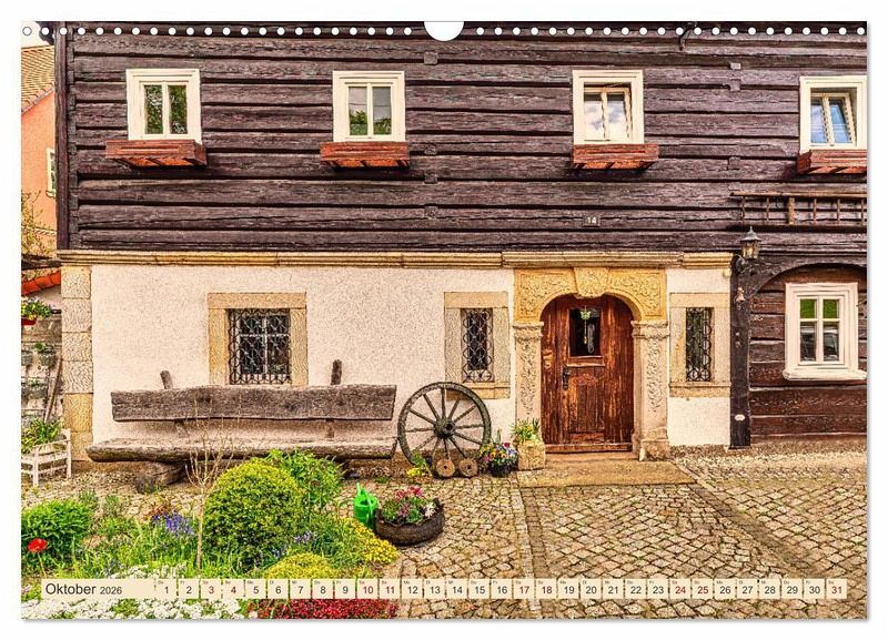 Oktober: Umgebindehaus auf dem Denkmalleerpfad in Waltersdorf.