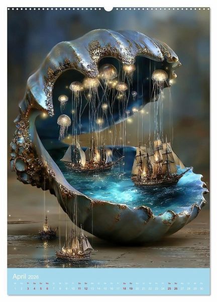 Ein Kalender wie kein anderer: Zwölf kunstvolle Bildwelten entführen dich in die Tiefen der Fantasie, wo Muscheln zu Toren werden - zu Städten aus Licht, Schiffen auf inneren Ozeanen und Korallenlandschaften voller Geheimnisse.