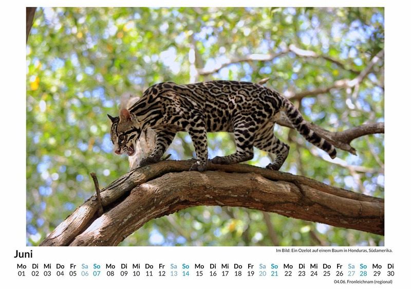 Entdecken Sie die faszinierende Welt des Ozelots - einer der schönsten und geheimnisvollsten Kleinkatzen der Welt! Unser hochwertiger Wandkalender bringt die Eleganz und Anmut dieser Pardelkatze direkt in Ihr Zuhause. Mit 12 atemberaubenden Motiven, gedruckt auf lichtbeständigem Bilderdruckpapier, erleben Sie Monat für Monat die wilde Schönheit der Natur. Gedruckt in Deutschland auf FSC-zertifiziertem Papier, vereint dieser Kalender Nachhaltigkeit und Ästhetik. Perfekt für Tierliebhaber und Naturliebhaber, die sich von der exotischen Ausstrahlung des Ozelots verzaubern lassen möchten. Holen Sie sich jetzt ein Stück Wildnis an Ihre Wand! Hochwertig Erleben Sie ein Jahr voller Eleganz mit unserem Premium-Fotokalender. Jedes der 12 Motive ist auf hochwertigem, lichtbeständigem Bilderdruckpapier gedruckt, um die Lebendigkeit jedes Bildes zu bewahren. Die robuste Spiralbindung gewährleistet Langlebigkeit und einfache Handhabung. Nachhaltig Unser Engagement für die Umwelt spiegelt sich in jedem Exemplar wider. Durch die Produktion auf Abruf reduzieren wir signifikant unseren Abfall. Wir verwenden ausschließlich umweltfreundliches, FSC-zertifiziertes Papier. Stolz gefertigt in Deutschland, achten wir bei unserer Logistik auf Klimaschutz, um unseren ökologischen Fußabdruck zu minimieren. Das ideale Geschenk Dieser Kalender ist das perfekte Präsent für jeden Anlass - ob Weihnachten, Geburtstage oder einfach als liebevolle Aufmerksamkeit zwischendurch. Geeignet für Freunde, Familie, Kinder und Erwachsene gleichermaßen, bereichert er jedes Zuhause mit seiner Vielfalt und Schönheit, unabhängig vom Alter der Beschenkten.