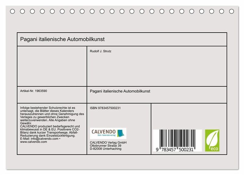 QUALITÄT - Hochwertiger Fotokalender mit 12 wunderschönen Motiven auf lichtbeständigem Bilderdruckpapier, robuste Spiralbindung.NACHHALTIG - deutliche Abfallreduzierung durch bedarfsgerechte Einzelstückfertigung, umweltfreundliches FSC-zertifiziertes Papier, Produktion in Deutschland, klimabewusste Logistik.PERFEKTES GESCHENK - Kalender für Freunde und Familie, für Kinder und Erwachsene, jung und alt, zu Weihnachten, Geburtstag oder zwischendurch.VIELFALT - Bildkalender in verschiedenen Formaten, z.B. DIN A5, DIN A4, DIN A3 sowie DIN A2. Ob Naturmotiv, Gemälde oder Fotos, ideal für ein persönliches Wohlfühlambiente.Pagani Hypercars aus Modena von Autor(in): rsvienna