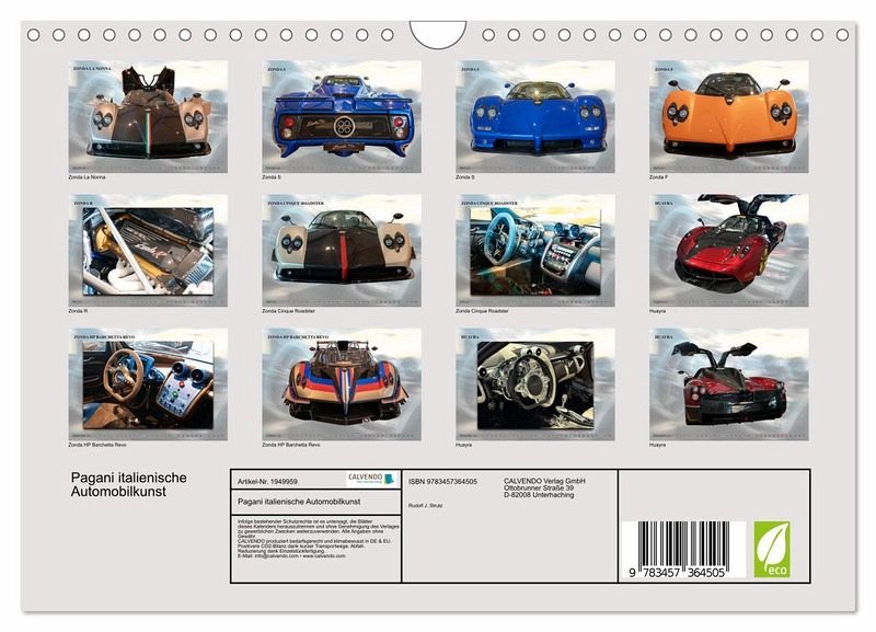 QUALITÄT - Hochwertiger Fotokalender mit 12 wunderschönen Motiven auf lichtbeständigem Bilderdruckpapier, robuste Spiralbindung mit Aufhängebügel.NACHHALTIG - deutliche Abfallreduzierung durch bedarfsgerechte Einzelstückfertigung, umweltfreundliches FSC-zertifiziertes Papier, Produktion in Deutschland, klimabewusste Logistik.PERFEKTES GESCHENK - Kalender für Freunde und Familie, für Kinder und Erwachsene, jung und alt, zu Weihnachten, Geburtstag oder zwischendurch.VIELFALT - Bildkalender in verschiedenen Formaten, z.B. DIN A5, DIN A4, DIN A3 sowie DIN A2. Ob Naturmotiv, Gemälde oder Fotos, ideal für ein persönliches Wohlfühlambiente.Pagani Hypercars aus Modena von Autor(in): rsvienna