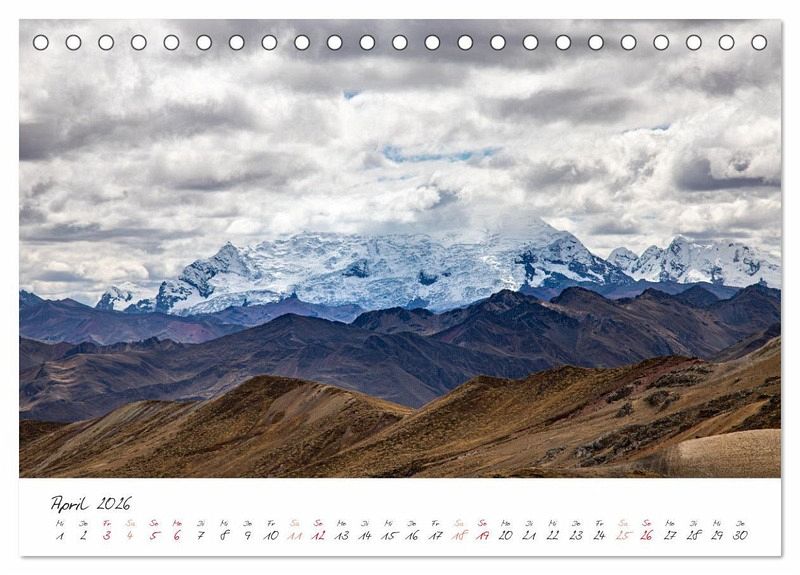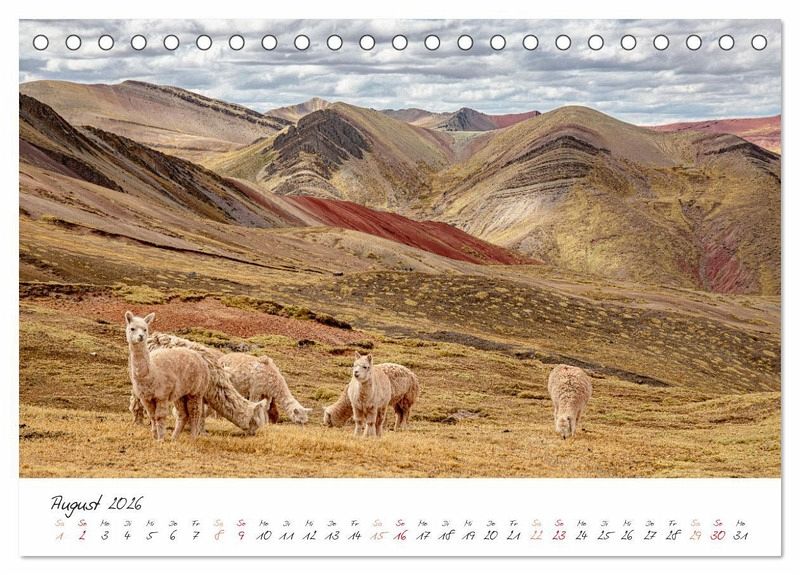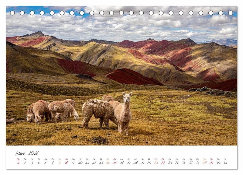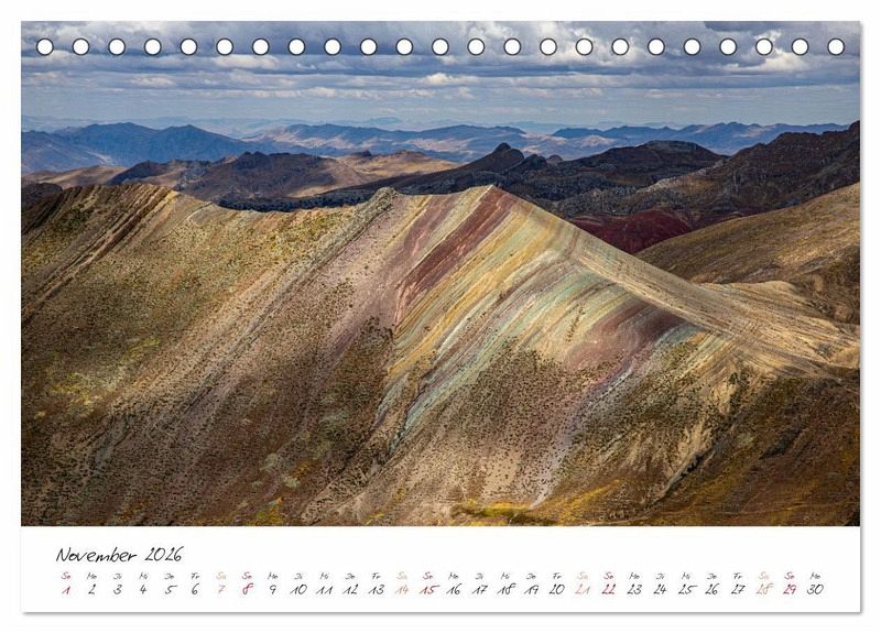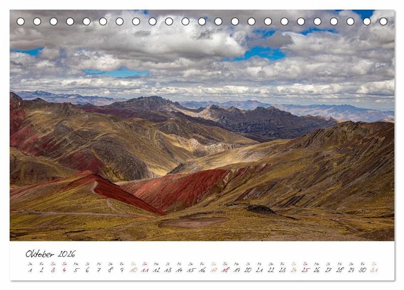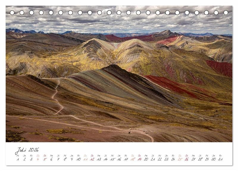 Von den schillernden Rottönen über die leuchtenden Gelb- und Grüntöne bis hin zu den sanften Blautönen - dieser Kalender entführt dich auf eine visuelle Reise durch die atemberaubende Farbenpracht des Rainbow Mountain Palccoyo. Die lebendigen Bilder werden dich mit ihrer Detailgenauigkeit und ihrer fesselnden Schönheit begeistern und dir einen Einblick in dieses bemerkenswerte Naturwunder geben.