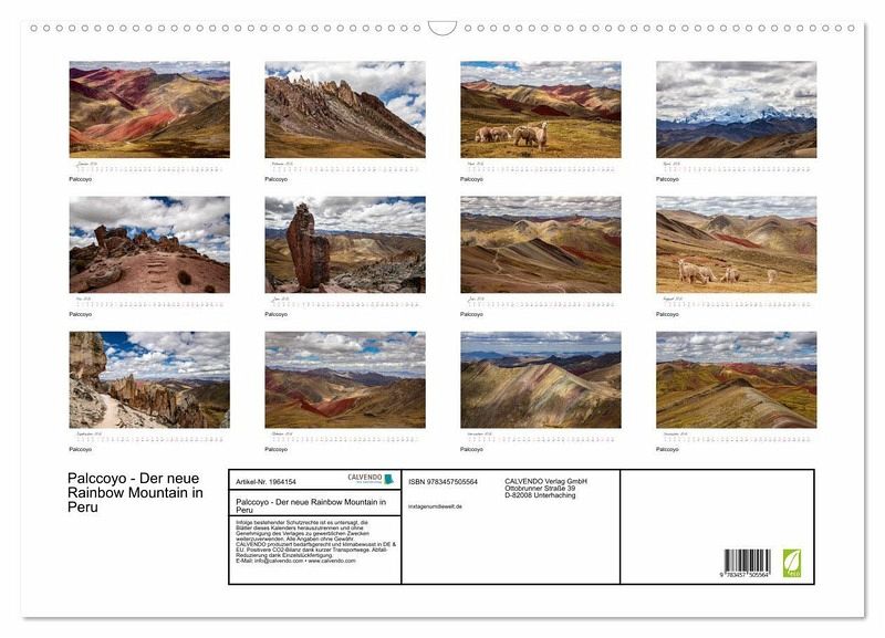 QUALITÄT - Hochwertiger Fotokalender mit 12 wunderschönen Motiven auf lichtbeständigem Bilderdruckpapier, robuste Spiralbindung mit Aufhängebügel.NACHHALTIG - deutliche Abfallreduzierung durch bedarfsgerechte Einzelstückfertigung, umweltfreundliches FSC-zertifiziertes Papier, Produktion in Deutschland, klimabewusste Logistik.PERFEKTES GESCHENK - Kalender für Freunde und Familie, für Kinder und Erwachsene, jung und alt, zu Weihnachten, Geburtstag oder zwischendurch.VIELFALT - Bildkalender in verschiedenen Formaten, z.B. DIN A5, DIN A4, DIN A3 sowie DIN A2. Ob Naturmotiv, Gemälde oder Fotos, ideal für ein persönliches Wohlfühlambiente.Der neue Rainbow Mountain - atemberaubende Farbenpracht des Rainbow Mountain Palccoyo von Autor(in): Inxtagenumdiewelt.de