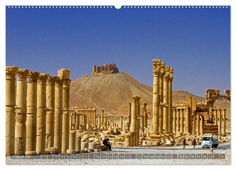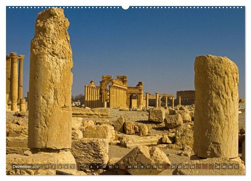 Sie überlebte Tausende Jahre und etliche Kriege: Die historische Ruinenstadt Palmyra. Nun ist sie endgültig vom Untergang bedroht und teilweise bereits zerstört. Der Kalender zeigt die beeindruckendsten Ansichten der Wüstenstadt, vor ihrer systematischen Zerstörung.