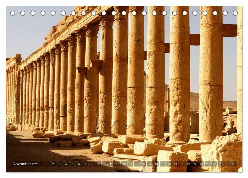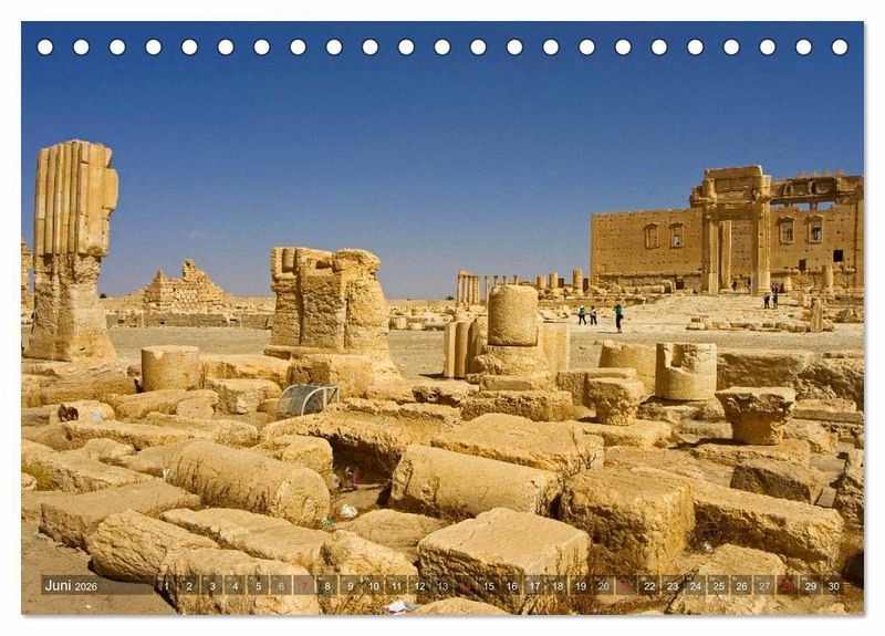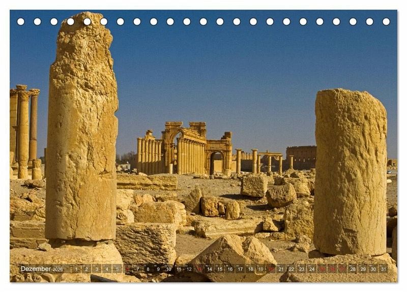 Sie überlebte Tausende Jahre und etliche Kriege: Die historische Ruinenstadt Palmyra. Nun ist sie endgültig vom Untergang bedroht und teilweise bereits zerstört. Der Kalender zeigt die beeindruckendsten Ansichten der Wüstenstadt, vor ihrer systematischen Zerstörung.