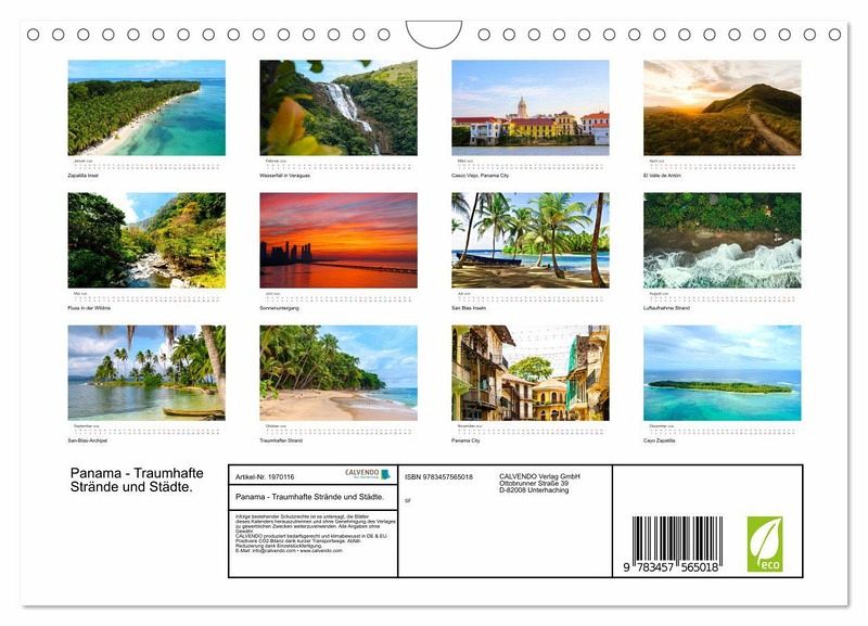 Panama hat viele wunderschöne Facetten. Das Land ist bekannt für den faszinierenden Panamakanal, das ist jedoch noch lange nicht alles was Panama zu bieten hat. Tauchen Sie mit diesem Kalender in die einzigartige Welt von Panama ein und genießen Sie jedes Monat ein weiteres tolles Motiv.