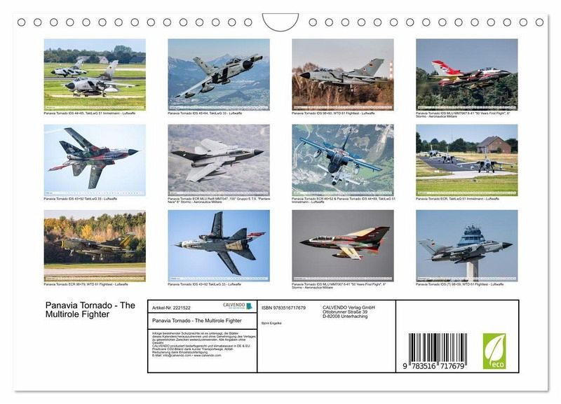 QUALITÄT - Hochwertiger Fotokalender mit 12 wunderschönen Motiven auf lichtbeständigem Bilderdruckpapier, robuste Spiralbindung mit Aufhängebügel.NACHHALTIG - deutliche Abfallreduzierung durch bedarfsgerechte Einzelstückfertigung, umweltfreundliches FSC-zertifiziertes Papier, Produktion in Deutschland, klimabewusste Logistik.PERFEKTES GESCHENK - Kalender für Freunde und Familie, für Kinder und Erwachsene, jung und alt, zu Weihnachten, Geburtstag oder zwischendurch.VIELFALT - Bildkalender in verschiedenen Formaten, z.B. DIN A5, DIN A4, DIN A3 sowie DIN A2. Ob Naturmotiv, Gemälde oder Fotos, ideal für ein persönliches Wohlfühlambiente.Panavia Tornado - Power in Bildern von Autor(in): Björn Engelke