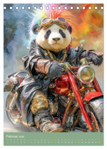 Februar: Punkiger Pandabär auf einem Motorrad