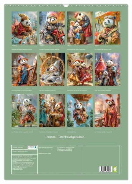 QUALITÄT - Hochwertiger Fotokalender mit 12 wunderschönen Motiven auf lichtbeständigem Bilderdruckpapier, robuste Spiralbindung mit Aufhängebügel.NACHHALTIG - deutliche Abfallreduzierung durch bedarfsgerechte Einzelstückfertigung, umweltfreundliches FSC-zertifiziertes Papier, Produktion in Deutschland, klimabewusste Logistik.PERFEKTES GESCHENK - Kalender für Freunde und Familie, für Kinder und Erwachsene, jung und alt, zu Weihnachten, Geburtstag oder zwischendurch.VIELFALT - Bildkalender in verschiedenen Formaten, z.B. DIN A5, DIN A4, DIN A3 sowie DIN A2. Ob Naturmotiv, Gemälde oder Fotos, ideal für ein persönliches Wohlfühlambiente.Anthropomorphe niedliche Pandas von Autor(in): Liselotte Brunner-Klaus