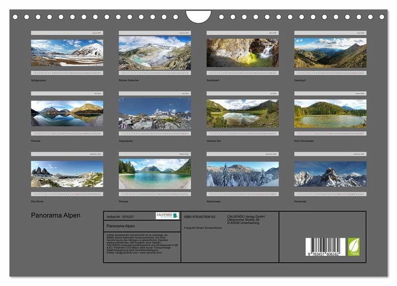 QUALITÄT - Hochwertiger Fotokalender mit 12 wunderschönen Motiven auf lichtbeständigem Bilderdruckpapier, robuste Spiralbindung mit Aufhängebügel.NACHHALTIG - deutliche Abfallreduzierung durch bedarfsgerechte Einzelstückfertigung, umweltfreundliches FSC-zertifiziertes Papier, Produktion in Deutschland, klimabewusste Logistik.PERFEKTES GESCHENK - Kalender für Freunde und Familie, für Kinder und Erwachsene, jung und alt, zu Weihnachten, Geburtstag oder zwischendurch.VIELFALT - Bildkalender in verschiedenen Formaten, z.B. DIN A5, DIN A4, DIN A3 sowie DIN A2. Ob Naturmotiv, Gemälde oder Fotos, ideal für ein persönliches Wohlfühlambiente.Die Alpen im Panorma Blick von Autor(in): Fotografin Schwarzfischer Miriam